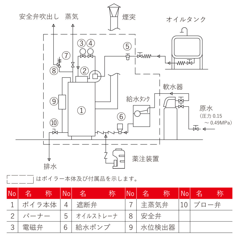 スイッチを入れるだけで給水とバーナーの運転が始まり、あとは設定蒸気圧力で自動運転を行います。